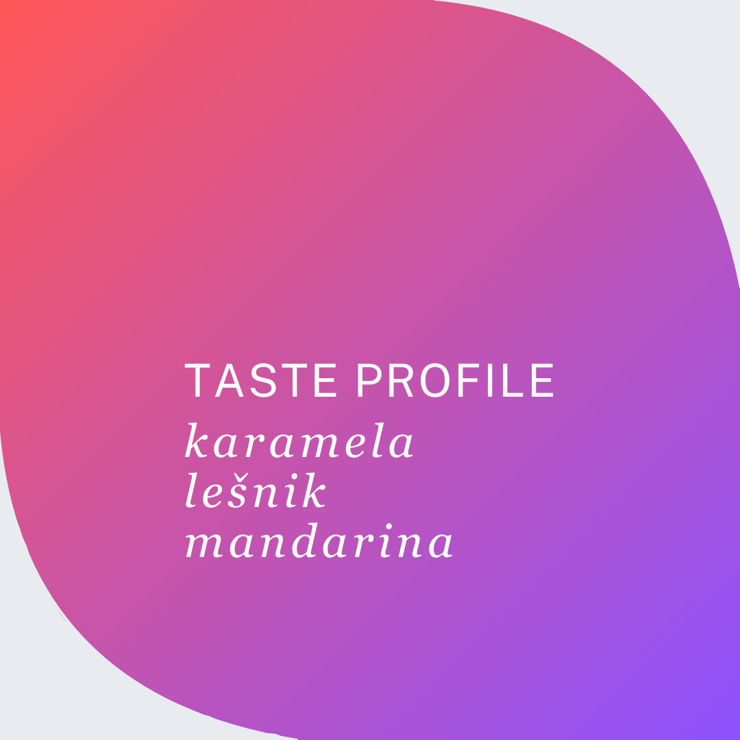 Skodelica združuje bogato sladkost karamele, elegantno oreškasto noto lešnika, ki jo dopolnjujejo uravnotežene kisline sočne mandarine. Ta espresso izraža dinamiko in energijo kolesarskega sveta, hkrati pa ponuja dolgotrajen pookus, ki navdihuje z prefinjenostjo.
