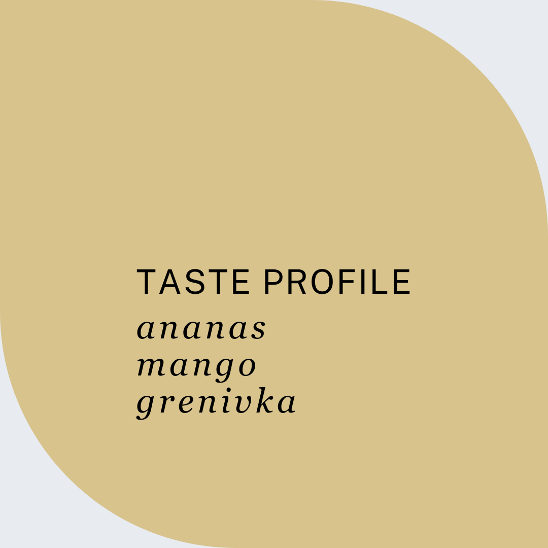 Kava ima srednje polno in gladko telo, živahne citronske kisline, ki spominjajo na svežo grenivko, ter izrazito tropsko sladkost zrelega manga in ananasa. Zaključek je dolg, čist in osvežujoč, z obstojno noto ananasa, ki prijetno zaokroži celotno izkušnjo v skodelici.